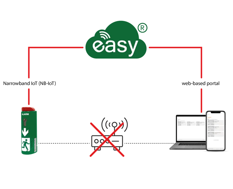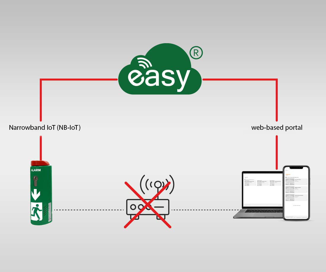 Alarm messages and status readings from the door guard are always available. The web-based easy-NB IoT platform can be used from any internet-enabled device — without any additional software or app.