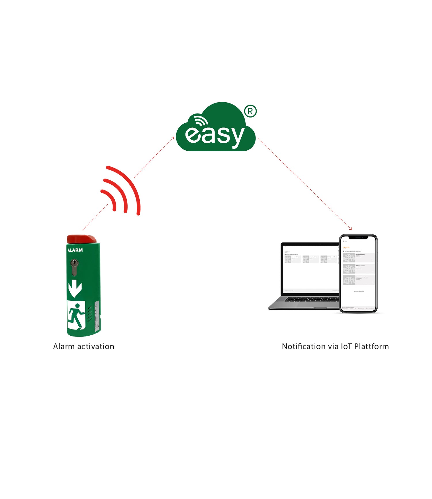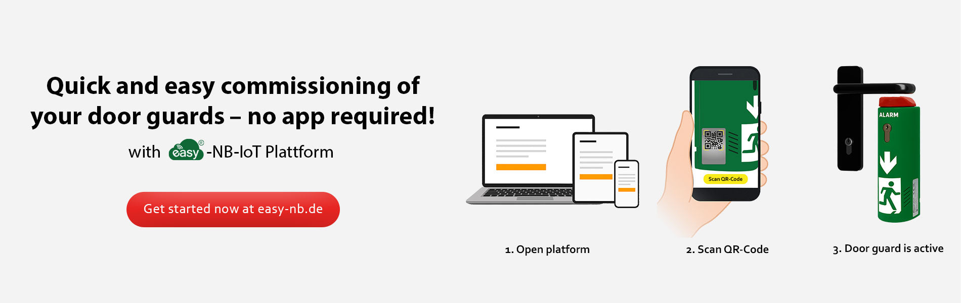 No more apps on your smartphone – the easy-NB IoT platform is web-based. Hurdles like administrator approvals for installation are eliminated, allowing for immediate use. Simply log in via the website www.easy-nb.de and you're ready to go!