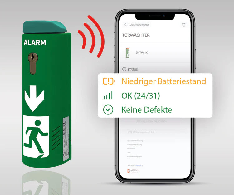 Eine volle Batterie ist entscheidend für die Funktionalität des Türwächters. Die integrierte Elektronik prüft alle 21 Tage automatisch die Batteriekapazität. Bei niedrigem Stand ertönt in regelmäßigen Abständen ein akustisches Signal, um auf den niedrigen Batteriestand aufmerksam zu machen.