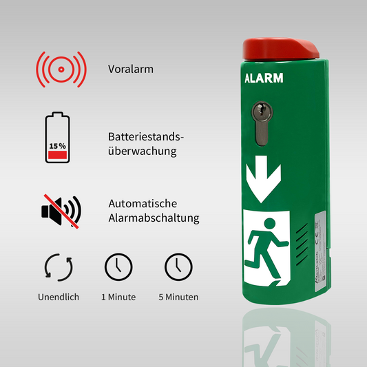 • Kurzer Voralarm bei Betätigung schützt vor Missbrauch